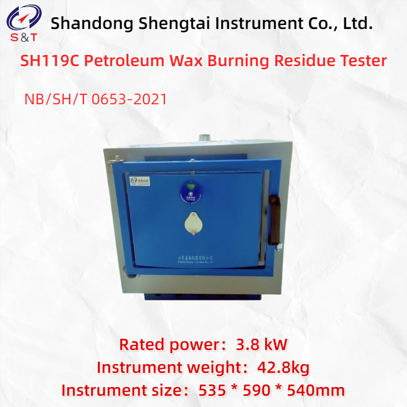 Ο δοκιμαστής υπολειμμάτων καύσης κηροζίνης SH119C έχει σχεδιαστεί και κατασκευαστεί βάσει του προτύπου NB/SH/T 0653-2021 "Προσδιορισμός Περιεκτικότητας και Κατανομής Αριθμού Άνθρακα των Κανονικών και Μη Κανονικών Αλκανίων στην Κηροζίνη (Μέθοδος Αέριας Χρωματογραφίας)". Αυτό το πρότυπο είναι εφαρμόσιμο για τον προσδιορισμό νέων ακαθαρσιών - ανόργανου περιεχομένου στην κηροζίνη και το γράσο πετρελαίου, καθώς και για τον προσδιορισμό του ανόργανου περιεχομένου σε οργανικές ενώσεις ως συστατικά ή ακαθαρσίες σε πτητικές ανόργανες ενώσεις.