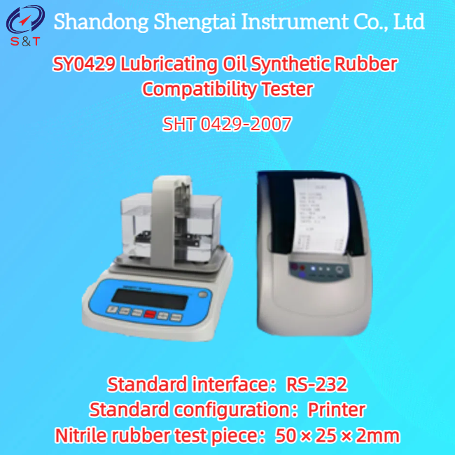 Ο δοκιμαστής συμβατότητας λιπαντικού γράσου και συνθετικού ελαστικού SY0429 χρησιμοποιείται για τον προσδιορισμό της συμβατότητας του λιπαντικού γράσου και του τυπικού συνθετικού ελαστικού, σύμφωνα με τη μέθοδο προσδιορισμού συμβατότητας SHT 0429-2007 λιπαντικού γράσου και υγρού λιπαντικού και ελαστικού. Ένα τυπικό τεμάχιο δοκιμής συνθετικού ελαστικού με καθορισμένο μέγεθος τοποθετείται σε ένα δείγμα λιπαντικού γράσου σε μια ορισμένη θερμοκρασία και, μετά από 70 ώρες δοκιμής, η αλλαγή του όγκου και η αλλαγή της σκληρότητάς του χρησιμοποιούνται για την αξιολόγηση της συμβατότητας του λιπαντικού γράσου και του τυπικού συνθετικού ελαστικού.