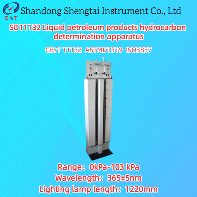 Το μετρητή υδρογονανθράκων SD11132 για υγρά προϊόντα πετρελαίου είναι σύμφωνα με το πρότυπο GB/T 11132-2002 της Λαϊκής Δημοκρατίας της Κίνας «Μέθοδος προσδιορισμού υδρογονανθράκων σε υγρά προϊόντα πετρελαίου (μέθοδος προσρόφησης φθορίζοντος δείκτη)» τις απαιτήσεις που ορίζονται στο σχεδιασμό και την κατασκευή, ισχύουν για την προσέγγιση, όπως ορίζεται στο πρότυπο GB/T 11132 κύριο υδρογονάνθρακα σε υγρά προϊόντα πετρελαίου με φθορίζοντα δείκτη που εμφανίζεται στη στήλη προσρόφησης πυριτίου, υπολογίστε το ποσοστό όγκου, ως την ποιότητα του μαζούτ όπως καύσιμο κινητήρα, καύσιμο αεροσκαφών που μετρά δείκτες.