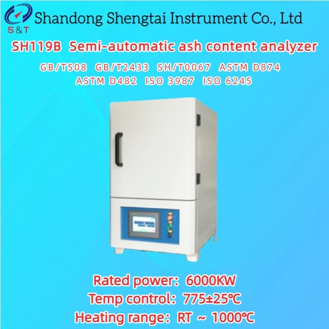 Ο ημιαυτόματος αναλυτής περιεκτικότητας σε τέφρα SH119B έχει σχεδιαστεί και κατασκευαστεί σύμφωνα με τις απαιτήσεις του προτύπου GB/T508, GB/T2433, SH/T 0067, ISO 6245, που χρησιμοποιείται για τον προσδιορισμό της περιεκτικότητας σε τέφρα των προϊόντων πετρελαίου και της περιεκτικότητας σε θειική τέφρα των λιπαντικών γράσων. Αυτό το όργανο είναι επίσης κατάλληλο για τον προσδιορισμό της περιεκτικότητας σε τέφρα σε προϊόντα πετρελαίου που περιέχουν πρόσθετα που σχηματίζουν τέφρα (συμπεριλαμβανομένων ορισμένων προσθέτων ενώσεων που περιέχουν φώσφορο), καθώς και λιπαντικά έλαια που περιέχουν μόλυβδο και χρησιμοποιημένα λάδια στροφαλοθαλάμου κινητήρα. Υιοθετεί ένα νέου τύπου κεραμικό θάλαμο ως θερμαντικό στοιχείο και είναι κατάλληλο για την ανίχνευση θειικής τέφρας σε λιπαντικά έλαια που περιέχουν πρόσθετα και συμπυκνώματα προσθέτων για αναμεμειγμένα λιπαντικά έλαια.