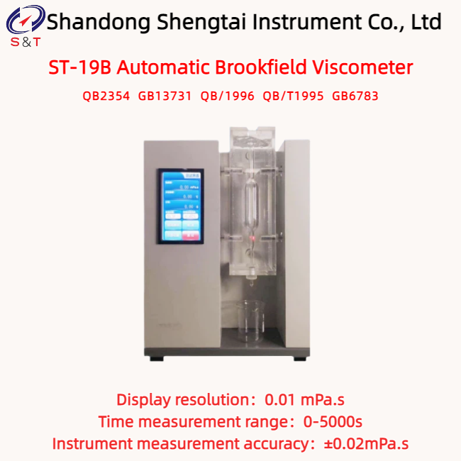 The ST-19B automatic Brookfield viscometer is a specialized instrument designed for measuring the Brookfield viscosity of gelatin, adhering to the QB2354 standard for "Pharmaceutical Gelatin" and complying with QB/T1995, GB6783, GB13731, and QB/1996. The determination of Brookfield viscosity of gelatin serves as a crucial indicator reflecting the production process level and quality control of gelatin. It is suitable for viscosity performance testing of all types of gelatin, including edible gelatin, pharmaceutical gelatin, industrial gelatin, and bone glue, as well as viscosity testing of gelatin-like liquids such as agar and protein powder.